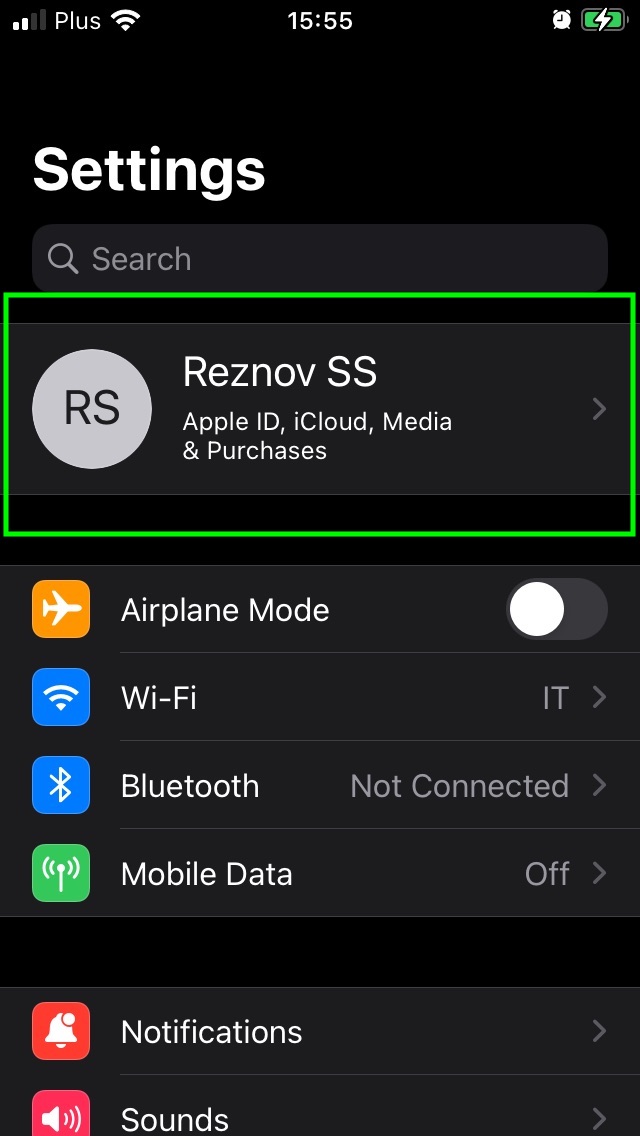 - Accédez à Paramètres => Votre compte iCloud (ici "Reznov SS")